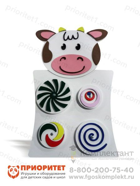 • На панели расположены элементы, притягивающие внимание детей. Ребенку будет интересно узнать, как движутся необычные волнообразные линии, если их раскрутить.