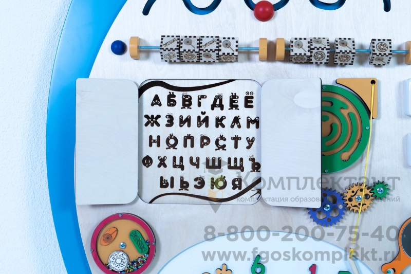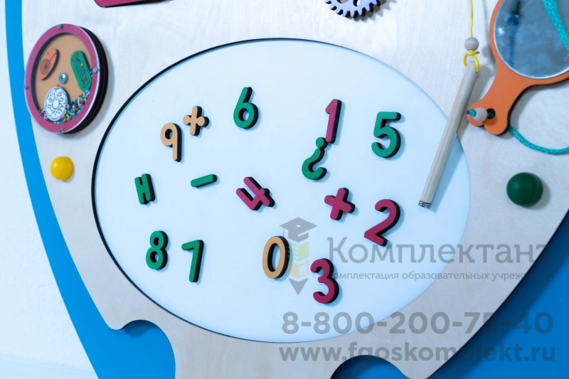 Комплектация: Бизиборд из МДФ с трехслойным покрытием безопасной краской на водной основе