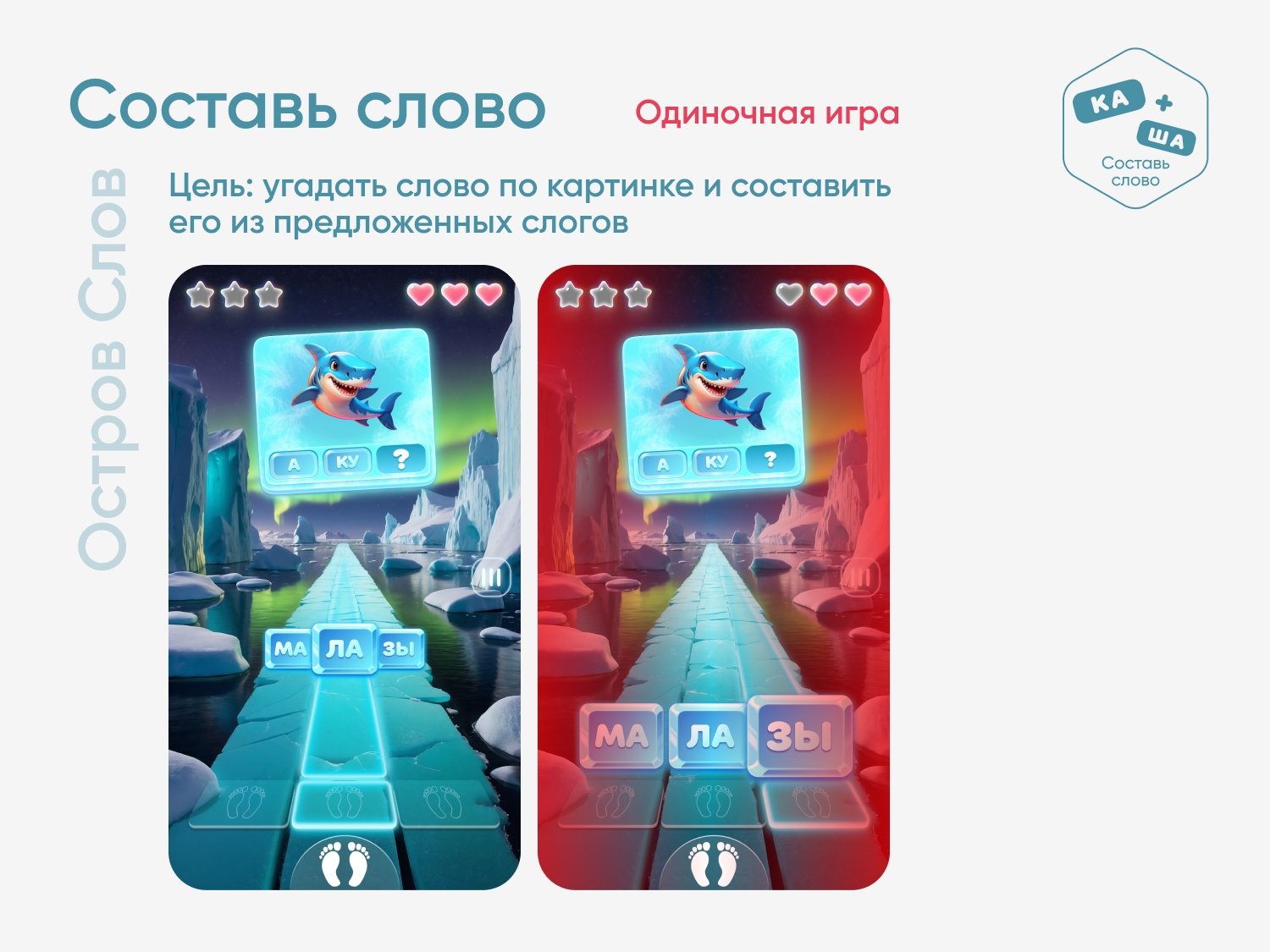 Цель игры — угадать слово по картинке и составить его из предложенных слогов. В ходе игры варианты слогов движутся на игрока, каждый ответ занимает свою дорожку. Для выбора верного ответа необходимо наступить на нужную дорожку и оставаться на ней, пока правильный ответ не доедет до игрока.