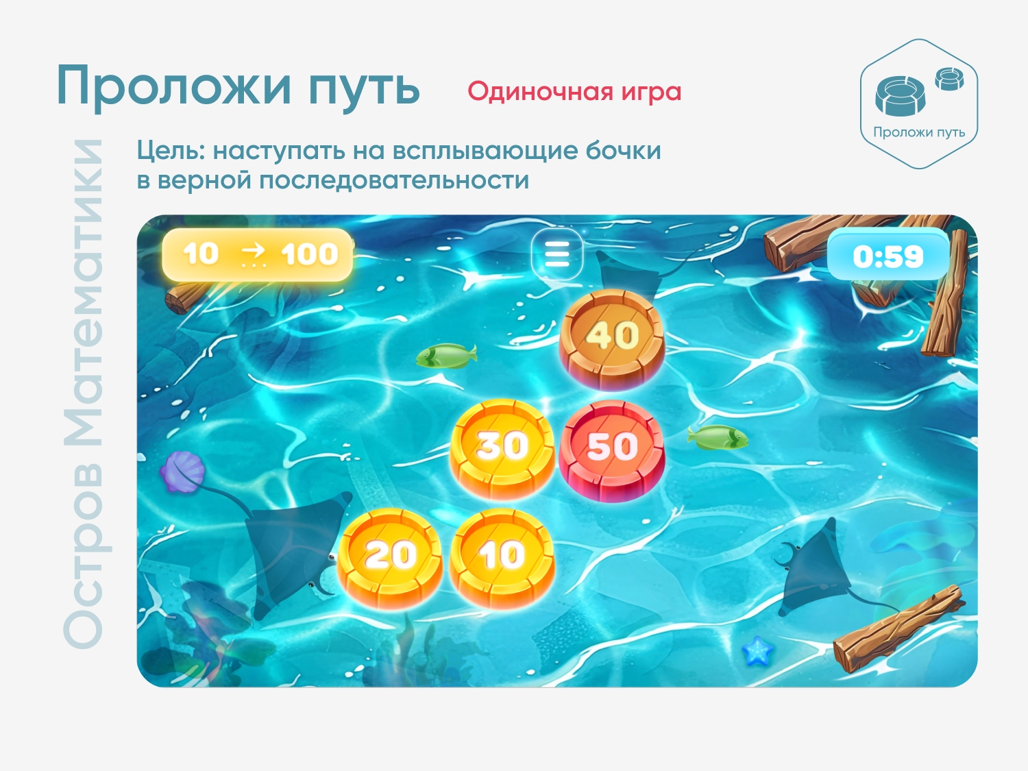 Цель игры — наступать на всплывающие бочки в верной последовательности.