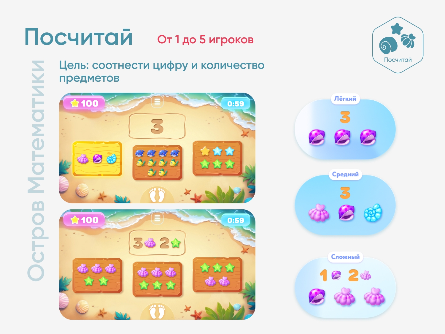 Цель игры — соотнести цифру и количество предметов.