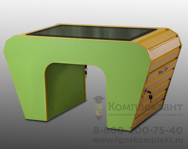 • Педагог имеет возможность проводить групповое занятие, ведь сенсорная панель обучающего стола поддерживает до десяти одновременных касаний.