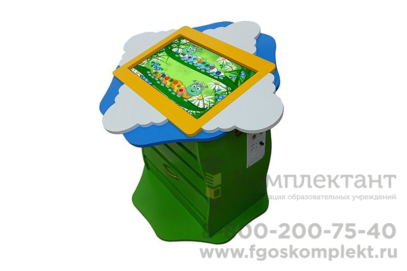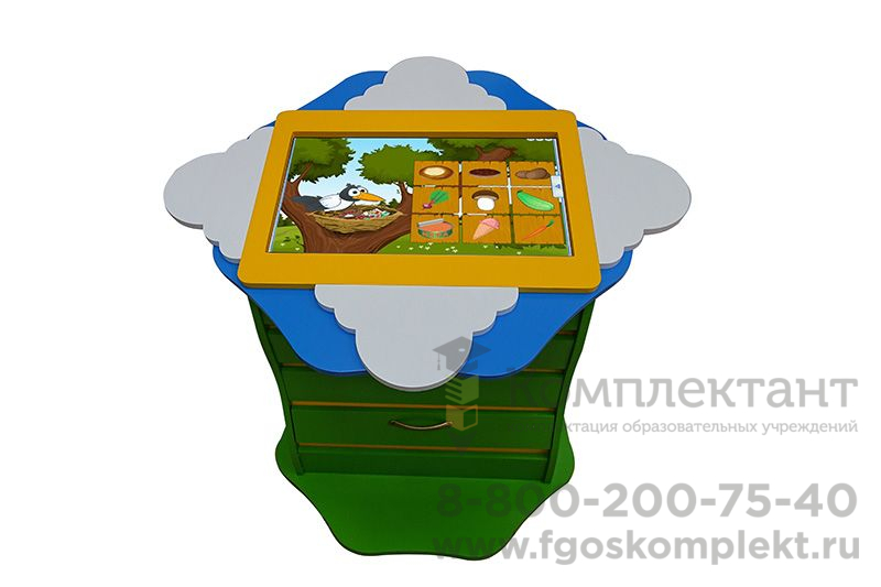 Комплекс оснащен выдвижным ящиком для хранения методических или любых других материалов. Сенсорный экран закрыт ударопрочным закаленным стеклом, что делает использование комплекса безопасным для детей.