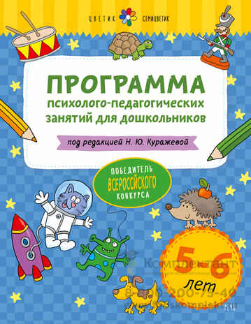 Цветик-семицветик. Программа психолого-педагогических занятий для дошкольников 5-6 лет Комплексная программа психолого-педагогических занятий с детьми дошкольного возраста Цветик-семицветик- победитель Всероссийского конкурса программ комплексного сопровождения психического развития детей дошкольного возраста.В этой части программы представлены тематические занятия, направленные на развитие интеллектуальной, эмоциональной, коммуникативной, личностной, волевой и познавательной сфер детей 5-6 лет в рамках подготовки к школе. Каждое занятие построено в игровой форме, доступной и интересной детям. Программа предусматривает как индивидуальные, так и групповые занятия, консультации родителей.Данная программа разработана для работы с детьми 5-6 лет в детских садах, центрах и группах раннего развития, других дошкольных учреждениях.