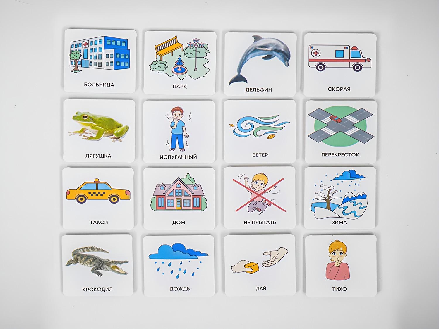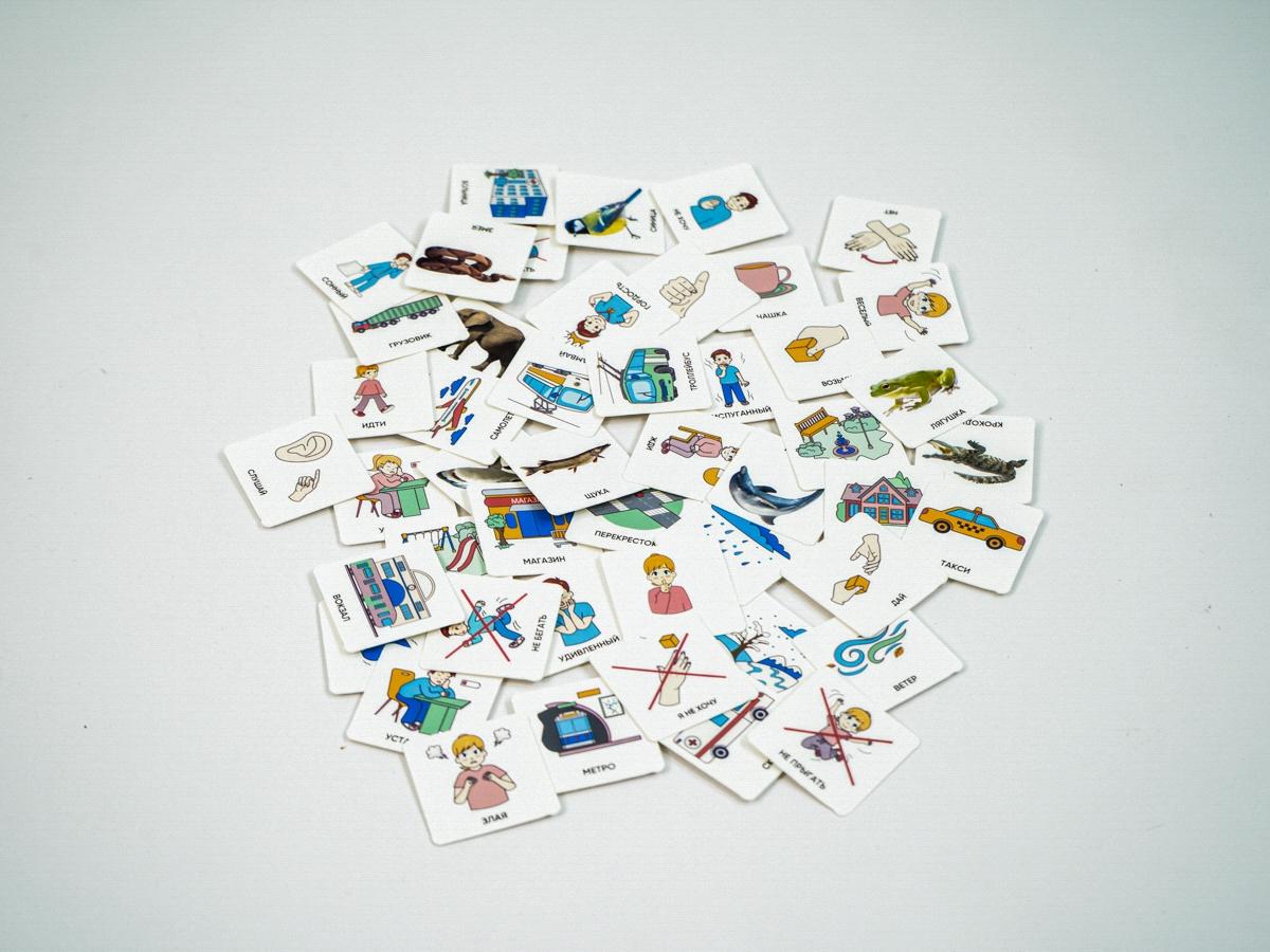 Карточки изготовлены из пластика полилит, он идеально гладкий и подходит для принтерной печати. Рисунки на карточках не стираются, их можно мыть и дезинфицировать, что особенно полезно при работе с особыми детьми. Продукция отвечает требованиям ФГОС ДО, СанПиН и критериям программы «Доступная среда».
