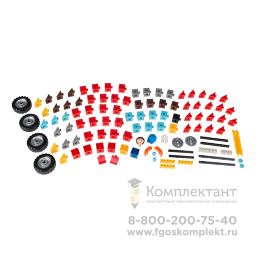 В  набор "В мире машин-новый старт!" из серии "Собери кубики" входит 120 деталей: уникальные кубики, призмы,  штифты, балки, колеса из которых ребенок может собрать 10 различных моделей машин, самолетов и вертолетов, а также любую конструкцию, подсказанную ему фантазией.