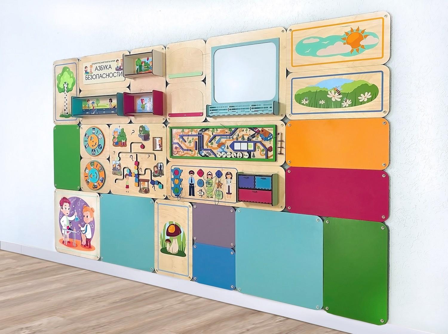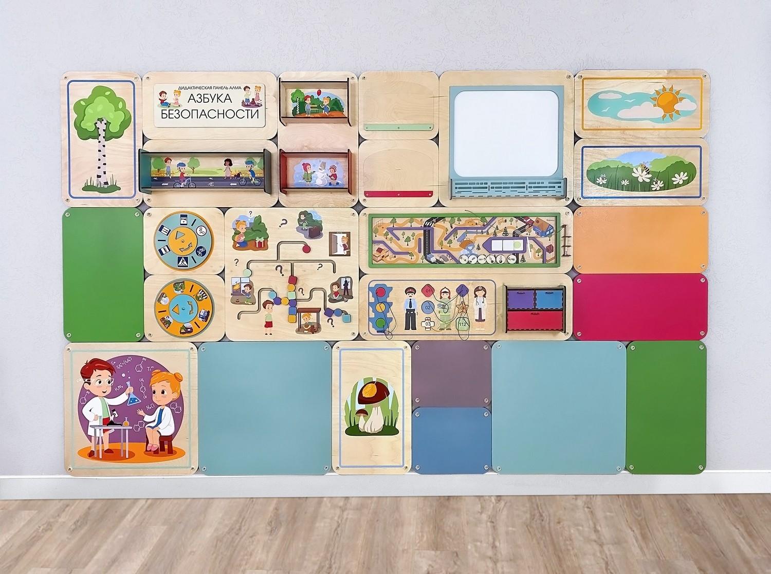 Набор дополнительных модулей для комбинации с дидактическими настенными панелями АЛМА. Отличное интерьерное решение для оформления помещений в едином стиле.