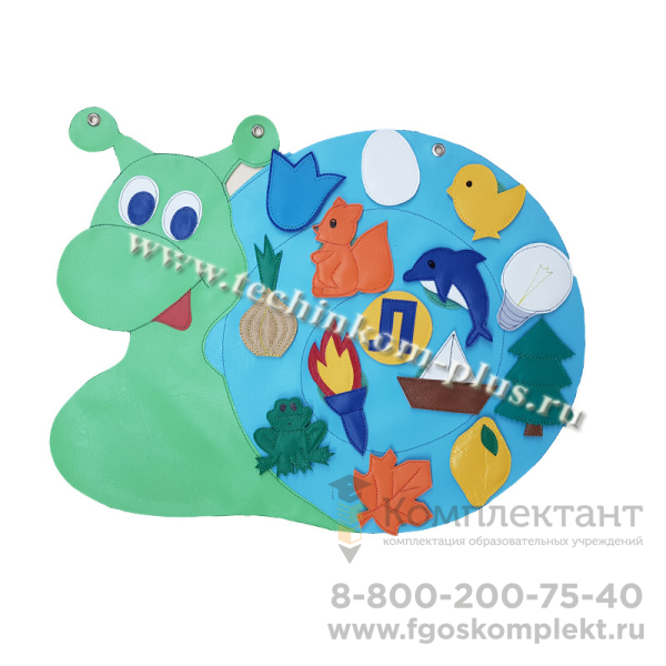 На домик улитки крепятся с помощью липучки буквы с картинками, гласные буквы для составления слогов, слов.