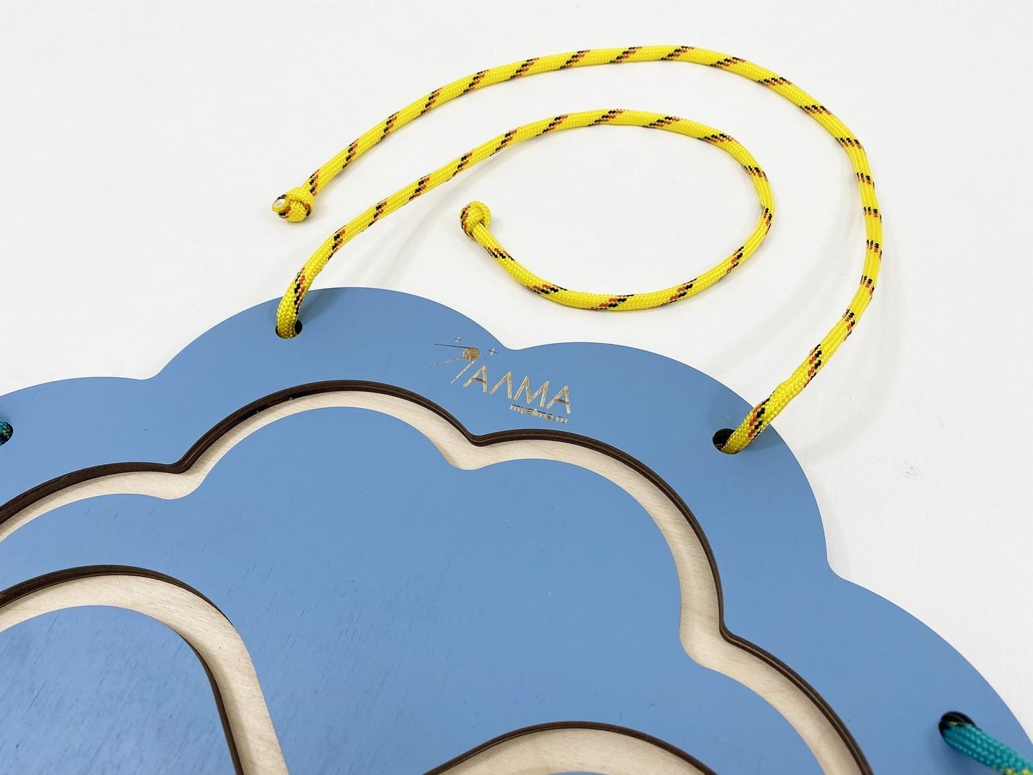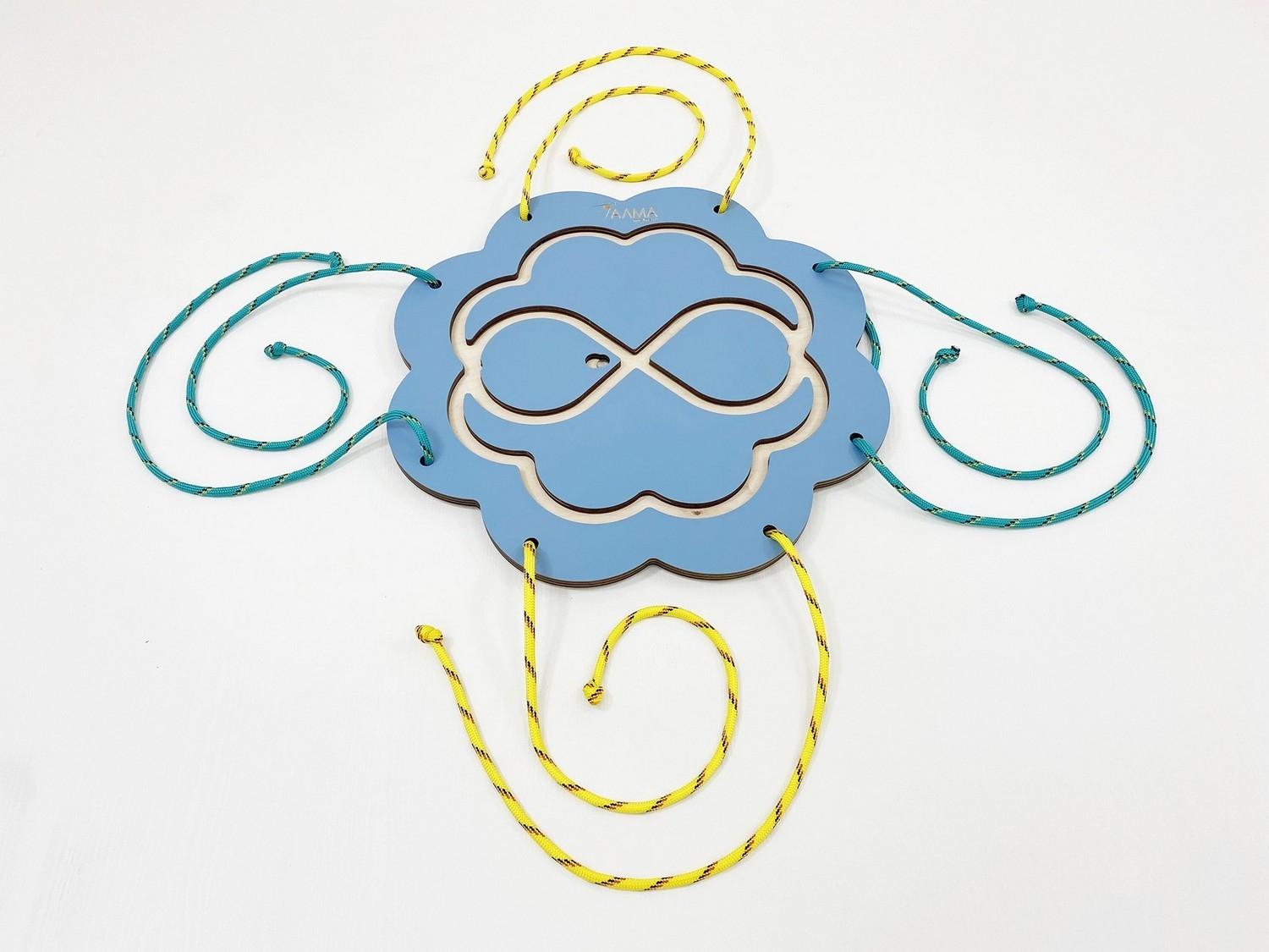 Командная нейровосьмёрка – игровая доска-лабиринт, которой нужно управлять в команде из четырёх человек. Малыши берутся за шнуры, каждый со своей стороны, и наклоняют доску в разные стороны, чтобы металлический шарик прокатился по нужной траектории. Развивает командный дух и совместное взаимодействие.