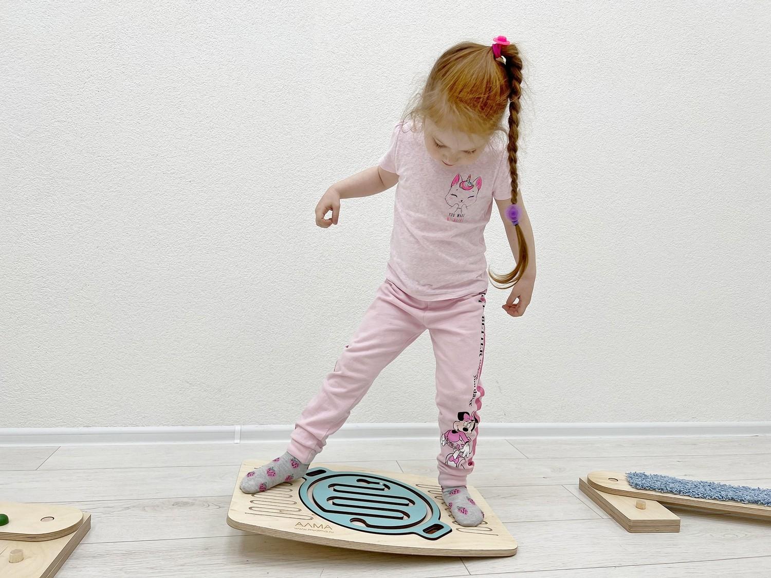 Ножной балансир платформа – игровой тренажёр, который развивает чувство равновесия и вестибулярный аппарат у малышей. Балансирование на неустойчивой платформе – это уже хорошая тренировка на ловкость и координацию движений, а если добавить балансир для рук в центральное углубление, то сложность задания и азарт только повышаются! Идёт одновременно развитие всего тела и активизация работы мозга.