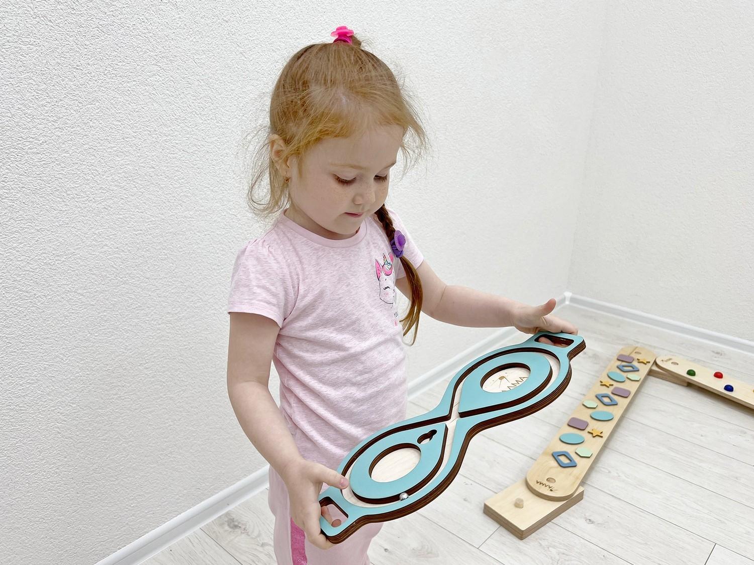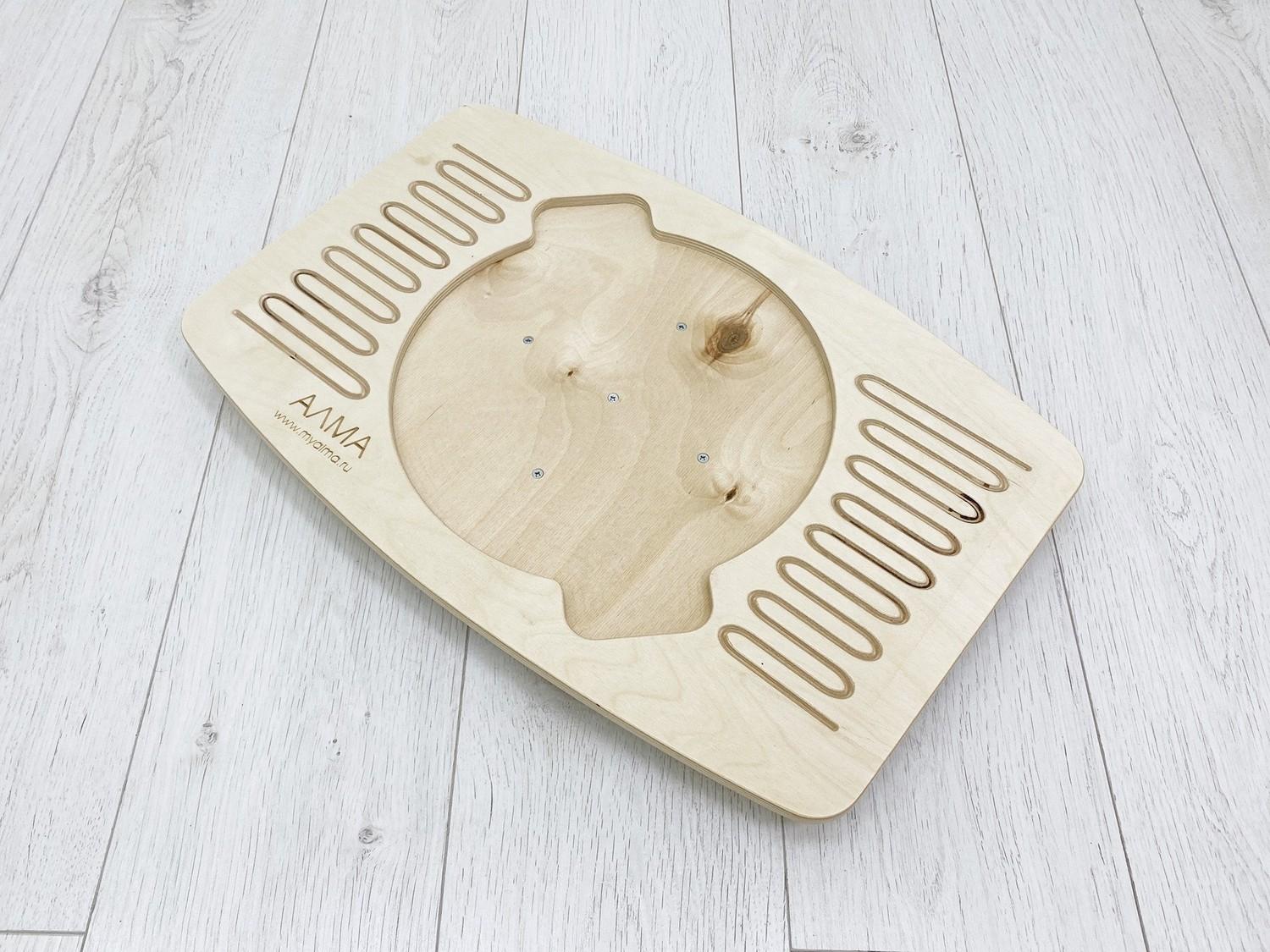 Балансир для рук – игровая доска-лабиринт, по которой ребёнок должен прокатить шарик, используя ловкость рук и логическое мышление. Стимулирует работу мозга и развивает координацию движений.