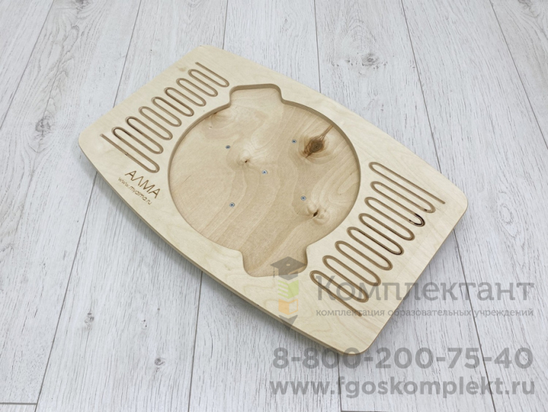 Это игровой тренажёр, улучшающий работу мозга через тренировку всего тела. Состоит из прямоугольной доски, закреплённой на неустойчивом основании в виде полусферы. В зоне ног ребристая змейка и противоскользящее покрытие. В центре балансира углубление под вставку-лабиринт. Её можно заказать отдельно.