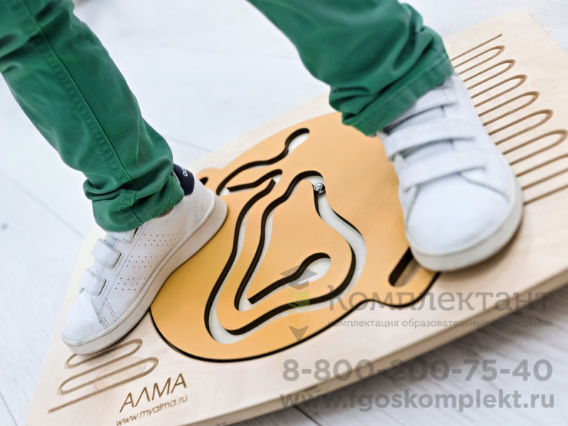Это игровой нейротренажёр для улучшения координации движений, развития внимания и логического мышления. Состоит из балансира для ног и четырёх лабиринтов-балансиров для рук, которые вкладываются в специальное углубление на ножном балансире.