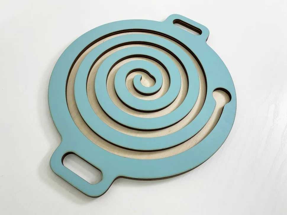 Благодаря заменяемости лабиринтов, игрушка просто универсальна! Дети могут играть отдельно с ручными лабиринтами или вставить их в балансир для ног и соревноваться в ловкости и скорости прохождения.