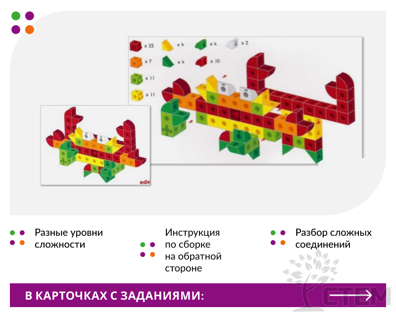 Набор из соединяющихся кубиков применяется для развития мелкой моторики, математических способностей, воображения и творческих навыков.
