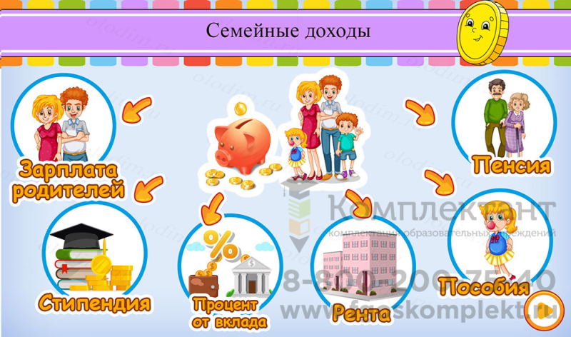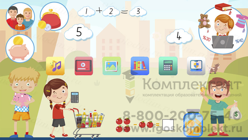 Комплект программного обеспечения "Olodim Финансовая грамотность" – это электронное учебное пособие для интерактивного оборудования, которое в игровой форме знакомит детей с основами экономики. Выполнение заданий позволяет не только легко запомнить и закрепить изучаемый материал, но и развить память, внимание и логическое мышление.