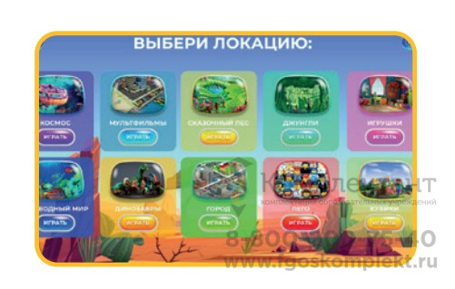 Игровые сцены: Космос, Подводный мир, Мультфильмы, Динозавры, Сказочный лес, Город, Джунгли, Лего, Кубики, Игрушки (+новые в разработке).