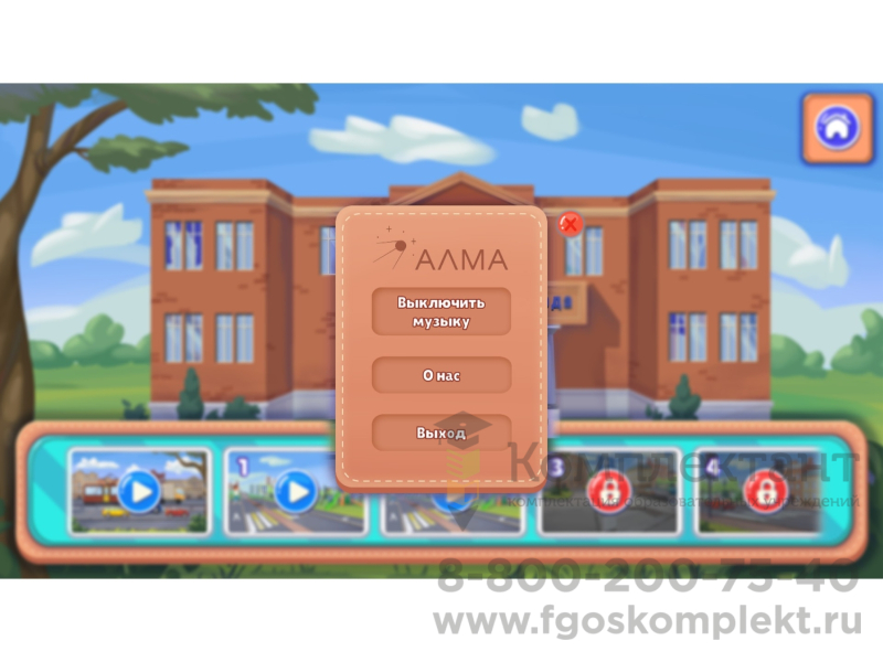 Программное обеспечение для обучения детей ПДД. Это интерактивная история из 18 уроков, в которой брат и сестра Артём и Арина отправляются в школу юного пешехода. Инспектор Автомобилькин и его друг автобус АЛМИК встречают ребят и учат грамотному поведению на дороге. В каждом из уроков дети изучают одно-два важных правила ПДД, а потом выполняют игровые задания на закрепление пройденного материала.