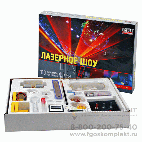 — Набор элементов для проведения исследований световых эффектов и световых явлений (маломощный лазер, линза, дифракционная решетка, рабочее поле, магнитные держатели, моторы и т. д. )