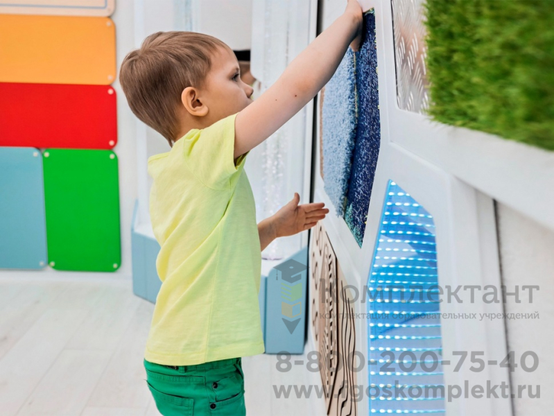 Это декоративные настенные модули, покрытые различными материалами и рельефами, для развития сенсорных систем малышей: осязания, зрения, слуха.