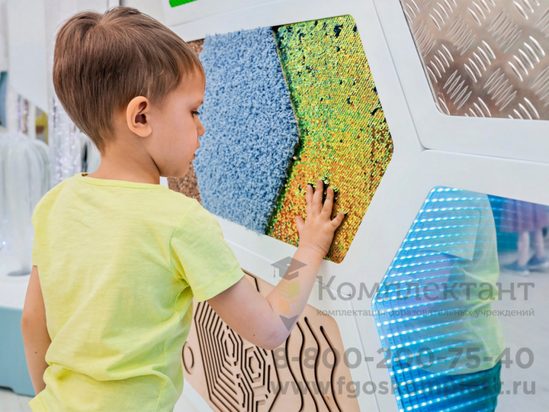 Это декоративные настенные модули, покрытые различными материалами и рельефами, для развития сенсорных систем малышей: осязания, зрения, слуха.