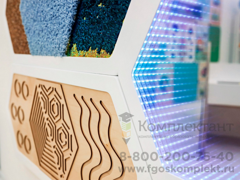 Это декоративные настенные модули, покрытые различными материалами и рельефами, для развития сенсорных систем малышей: зрения, осязания, слуха.
