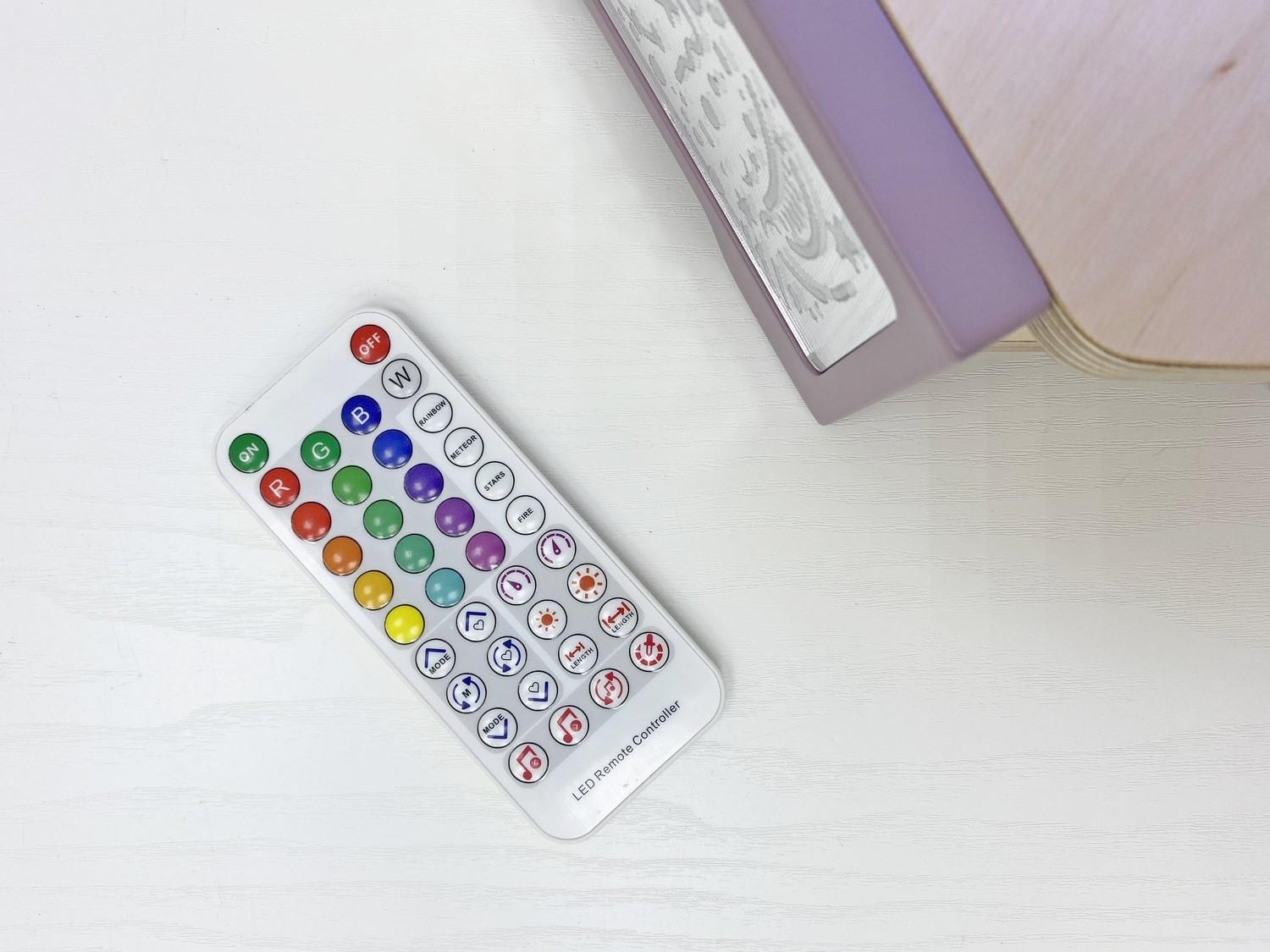 Свечение колонны регулируется с пульта управления, в нём есть 142 динамических режима: можно переключать цвета, скорость и плавность их смены, добавлять различные спецэффекты. Предусмотрена функция сбора любимых эффектов: те, что вам больше нравятся, будут выделены в отдельный плейлист.