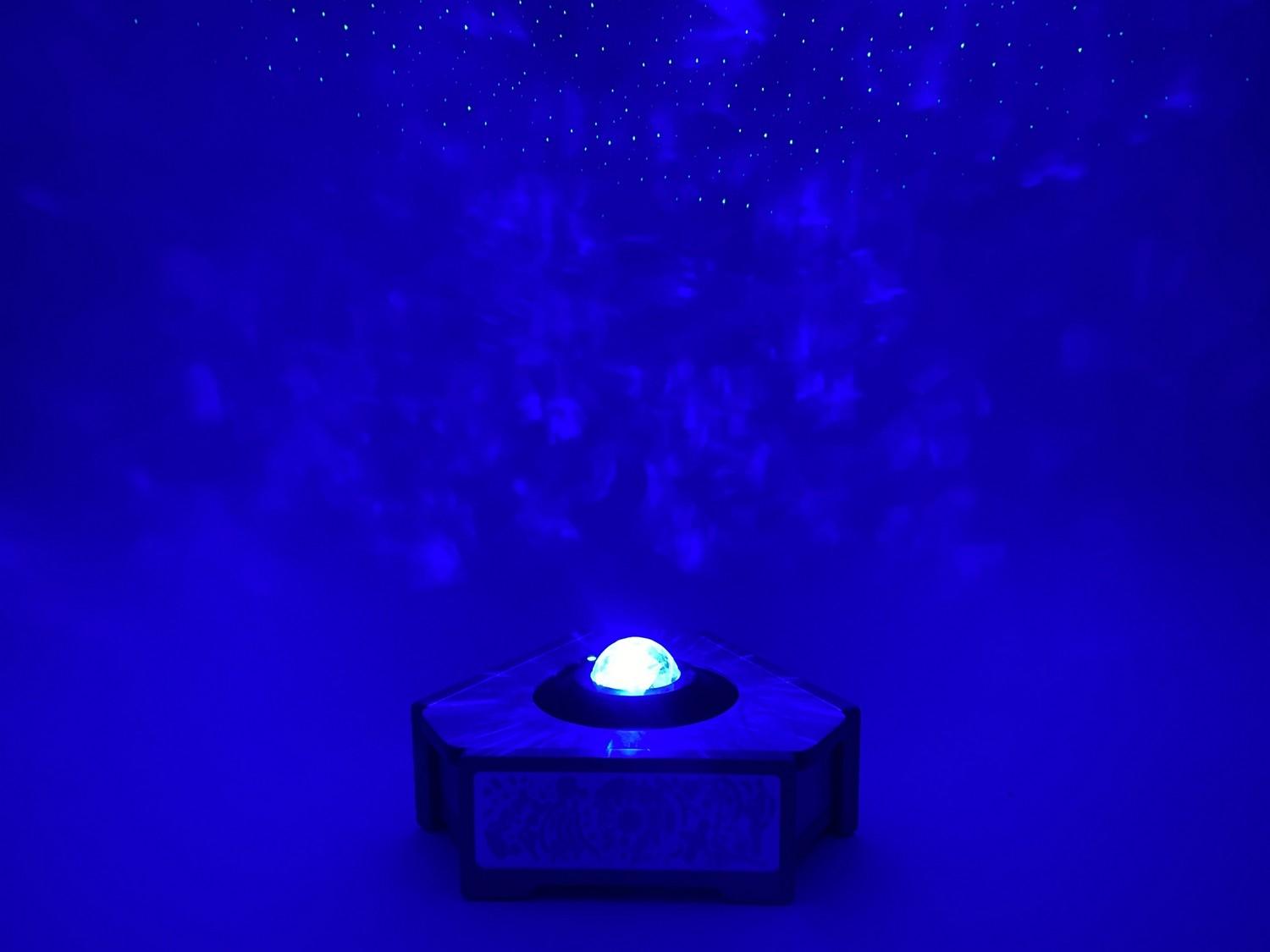 У проектора есть 10 режимов космических спецэффектов, которые можно переключать с пульта дистанционного управления. Яркость свечения настраивается в трёх разных режимах. Есть таймер автоматического отключения.
