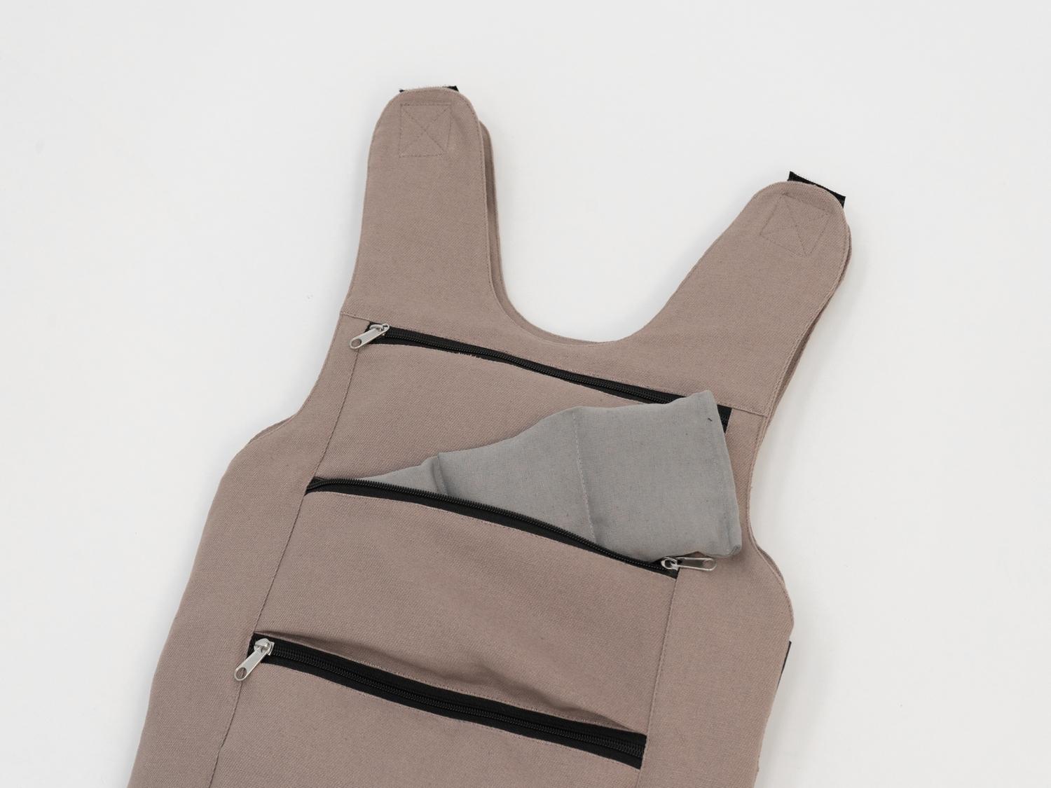 Утяжелённый жилет для создания глубокого тактильного давления и стимуляции проприоцепции у детей с РАС, СДВГ и нарушениями сенсорной чувствительности. С помощью карманов с двух сторон можно изменять и распределять вес изделия, добавляя или убирая мешочки с грузом.