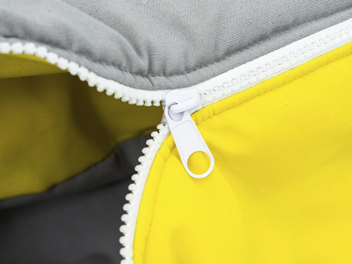 Яйцо выполнено из приятной наощупь ткани, между верхним и внутренним слоями проложен наполнитель, поэтому яйцо Кислинг такое мягкое и уютное. Ребёнок может забраться туда целиком, как в домик. По верхнему краю идёт пластиковая молния.