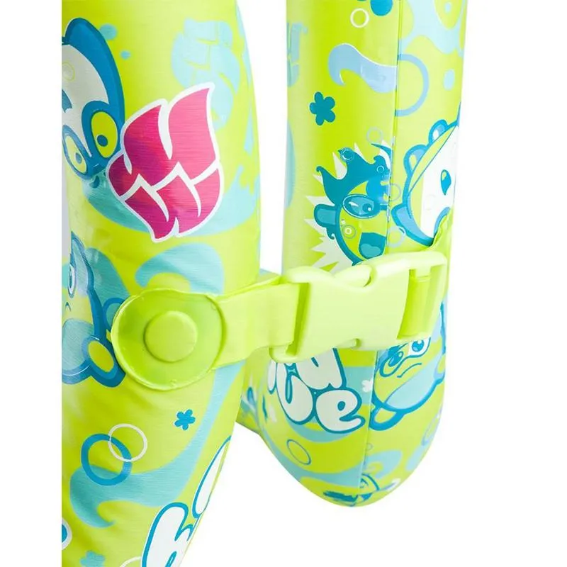 Приспособление для обучения детей плаванию представляет собой облегченный жилет. Он обеспечивает необходимую поддержку на воде, оставляя тело свободным. Такой облегченный жилет отлично подходит для купания в открытых водоемах. При высоких температурах окружающего воздуха он более комфортен по сравнению с закрытыми моделями. При этом облегченный жилет также надежно держится на теле за счет ремешков с удобным замком-защелкой. Подойдет жилет и для обучения плаванию в бассейне. Высокое качество изделия подтверждает пройденный тест на безопасность EN71.