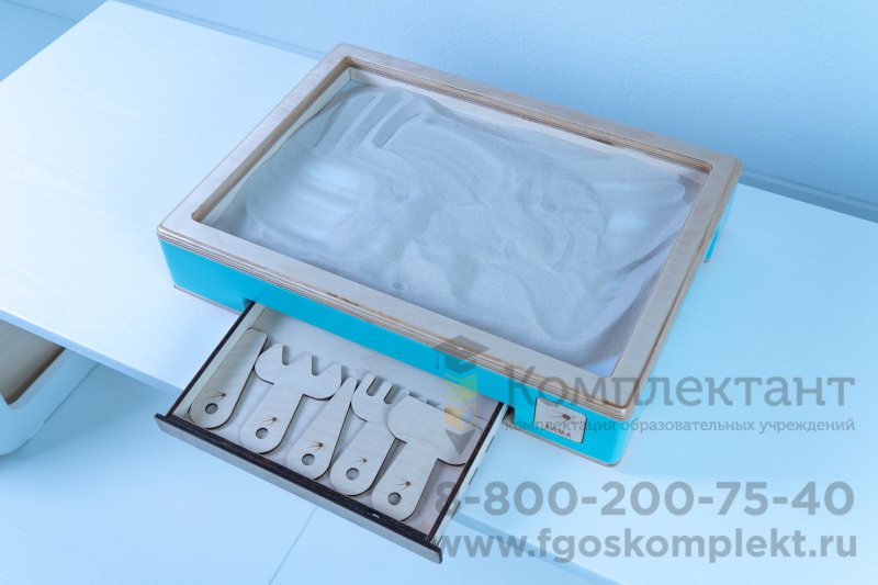 Компактный вес и размер Песочных историй, позволяют без труда проводить занятия на уже имеющихся столах, в образовательном учреждении.