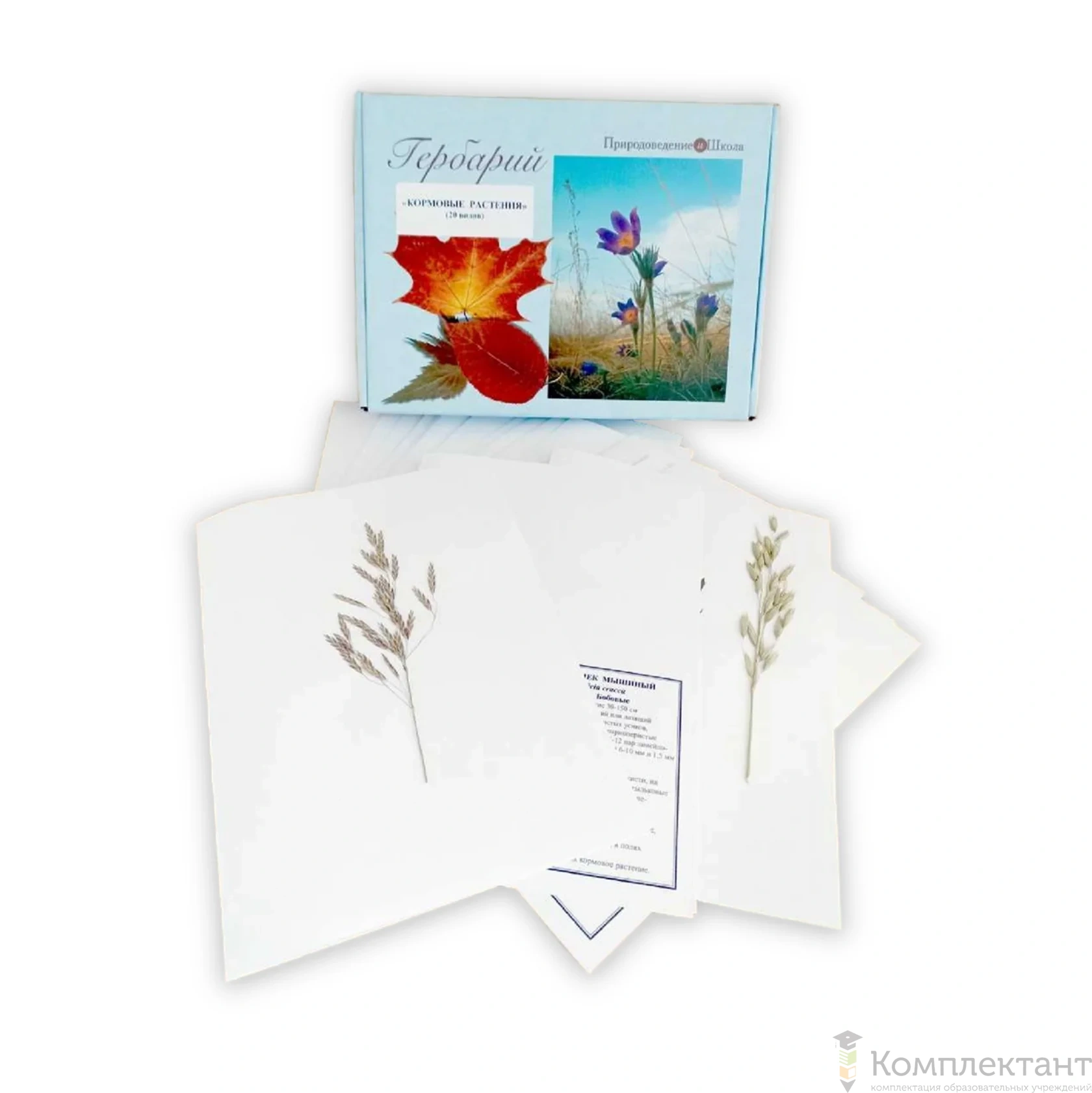 В состав гербария входят: горошек мышиный; горошек посевной; клевер луговой; костёр; кукуруза; люпин; люцерна; мятлик; овёс; просо; пшеница; рожь; свёкла; сорго; тимофеевка; чечевица; чина; овсяница луговая; эспарцет; ячмень (всего 20 гербарных листов формата А3). Гербарий сопровождается электронным пособием на CD с описанием и изображениями растений входящих в состав.
