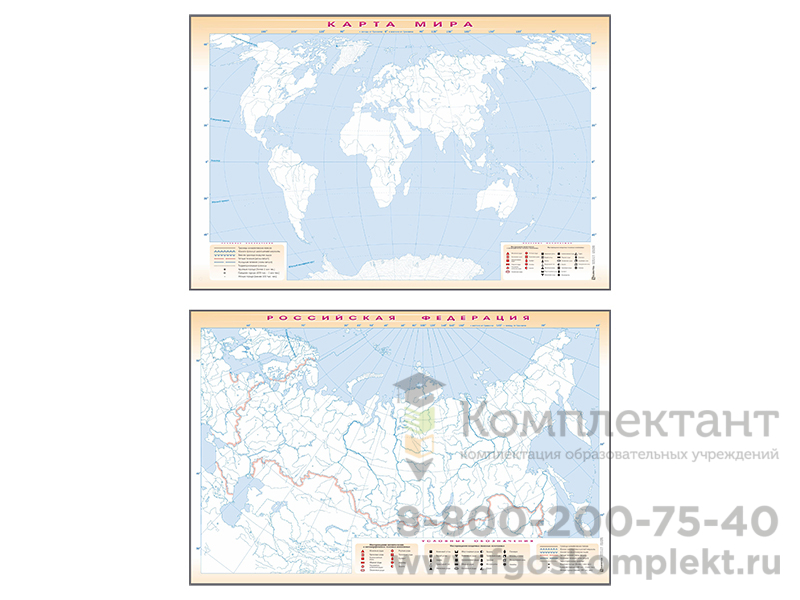 Фрагмент (демонстрационный) маркерный (двухсторонний) "Карта мира и Российской Федерации" (немая) с комплектом тематических магнитов КМ-3