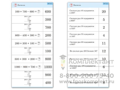 Комплект карточек предназначен для использования на уроках математики в начальной школе.