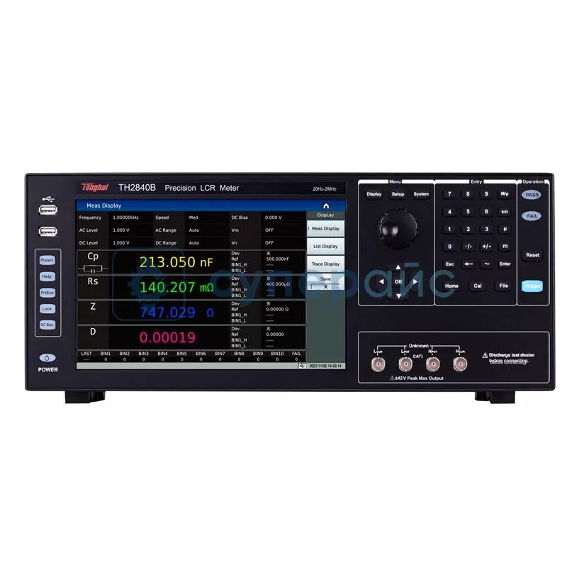 Переменный ток | Cp / Cs, Lp / Ls, Rp / Rs, |Z|, |Y|, R, X, G, B, θ, D, Q, VAC, IAC |