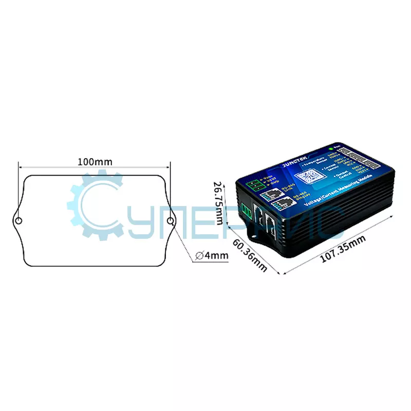 Габариты измерительного модуля 107.35 х 60.36 х 26.75 мм