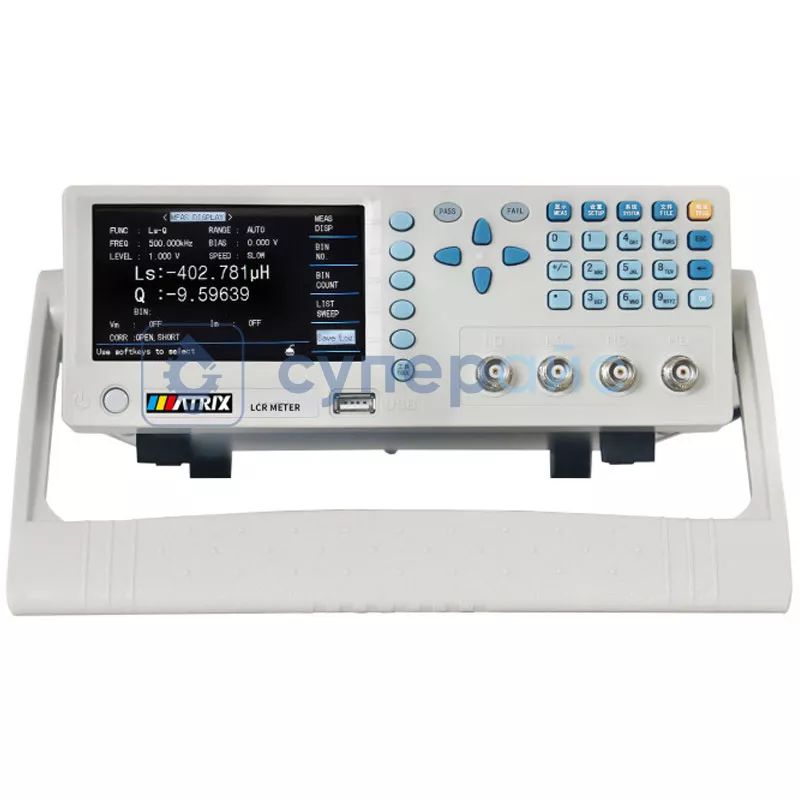 MATRIX MCR-6100A - это высокоточный настольный LCR-метр, предназначенный для проведения комплексных измерений. Прибор работает с параметрами индуктивности (L), емкости (C) и сопротивления (R) конденсаторов, катушек индуктивности, резисторов и других пассивных элементов.