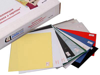 Образцы пронумерованы соответственно списку. Пособие комплектуется руководством по эксплуатации, содержащим информацию о видах и свойствах бумаги и картона.