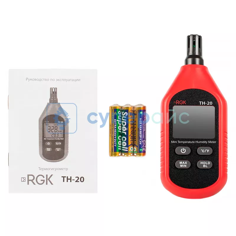 Комплектация | термогигрометр RGK TH-20 - 1 шт батарейка типа "ААА" - 3 шт руководство по эксплуатации - 1 шт |