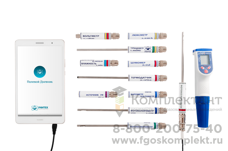 Профессиональная комплектация объединяет в себе два автономных модуля, комплект методических пособий и программное обеспечение, 18 измерительных, 7 исполнительных устройств, гидробиологический и энтомологический наборы, определители и методические материалы.