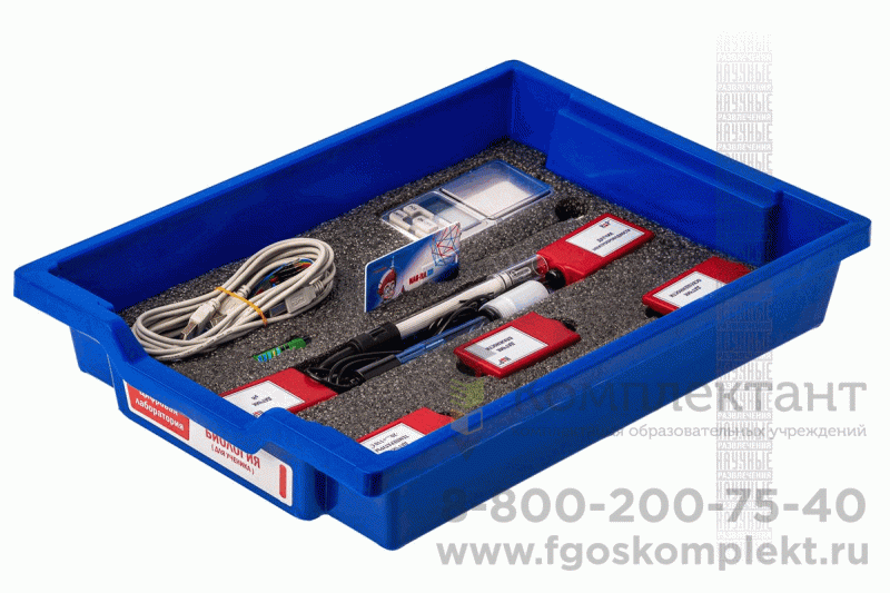Цифровая лаборатория укомплектована в специальный пластиковый контейнер, который закрывается прозрачной пластиковой крышкой для обеспечения наблюдения за содержимым. Комплект оборудования и датчики в контейнере располагаются на специальном ложементе