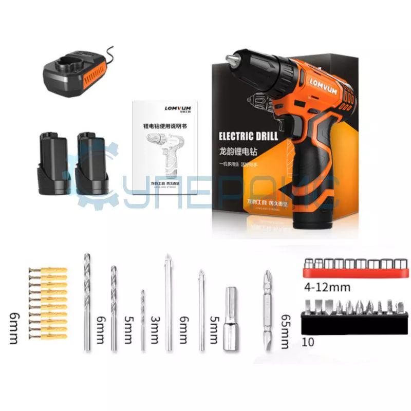 Дрель-шуруповерт Lomvum LV-8612S с двумя аккумуляторами и насадками