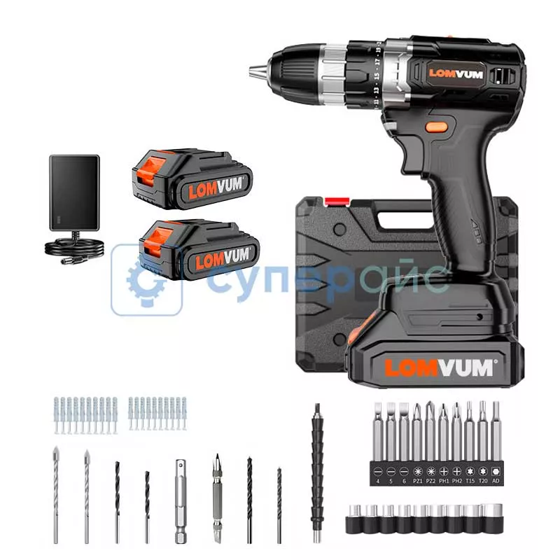 Дрель-шуруповерт Lomvum LY-1201 с кейсом и двумя аккумуляторами