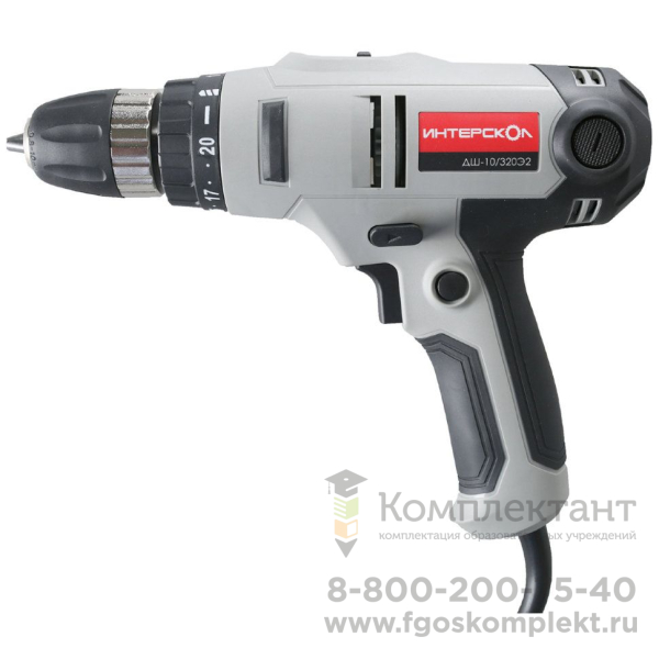 ИНТЕРСКОЛ Шуруповерт ДШ-10/320Э2 сетевой (0-450-1800об/мин, 35Нм, БЗП 10мм, 1,5кг)