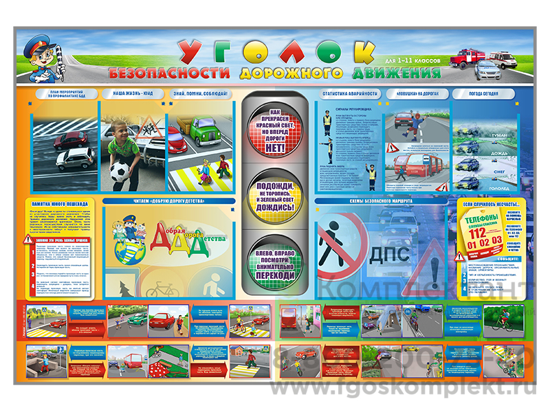 Стенд "Уголок безопасности дорожного движения" для 1-11 классов