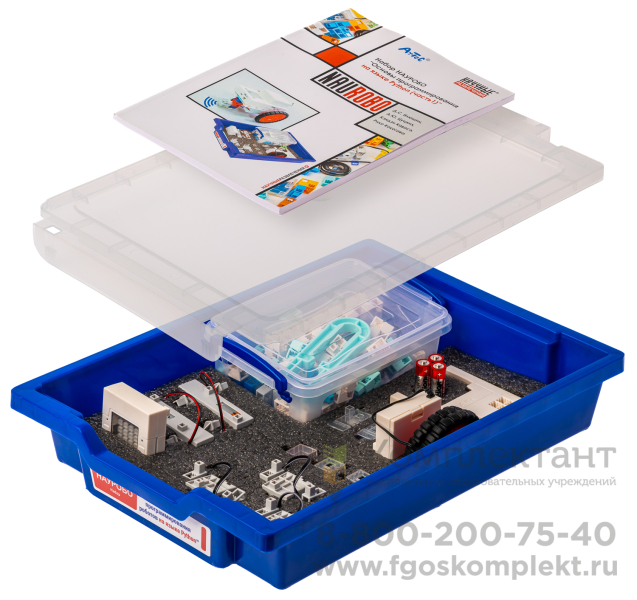 Состоит из набора для программирования роботов на языке Python, который предназначен для обучения детей среднего и старшего возраста приемам программирования робототехнических устройств на языке Python.