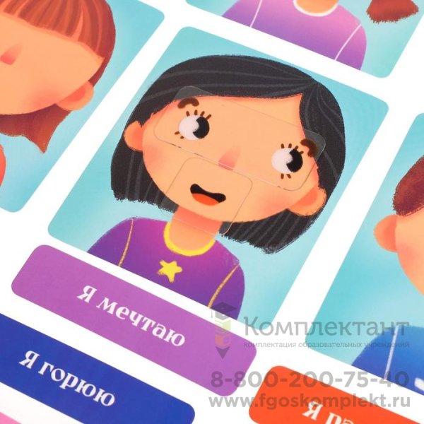 С помощью данного набора ребенок познакомится с основными эмоциональными состояниями и их мимическими проявлениями.