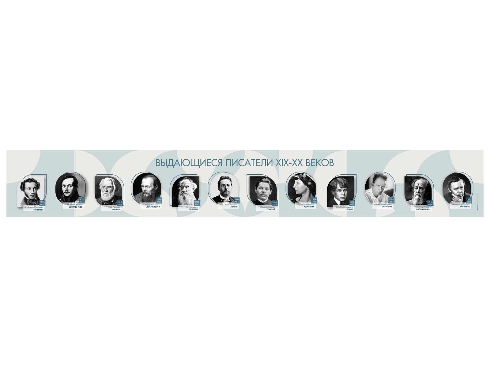 Стенд-лента представляет собой панель, на которой размещена информация о выдающихся русских писателях.