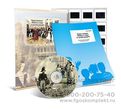 Пособие включает в себя СD-диск, содержащий наглядные материалы для работы над романом «Война и мир»: иллюстрации к произведению, изображения героев романа и отдельных сцен («Князь Андрей на Бородинском поле», «Первый бал Наташи Ростовой», «Cалон А.П. Шерер» и т.д.), выполненные художниками разных поколений в разных художественных техниках; приложение на альтернативном носителе – слайдах для диапроектора, методическое пособие. Пособие может быть использовано как на уроках литературы при работе над романом, так и для проведения тематических классных или школьных мероприятий. СD-диск предназначен для работы с интерактивной доской, мультимедиапроектором или персональным компьютером.